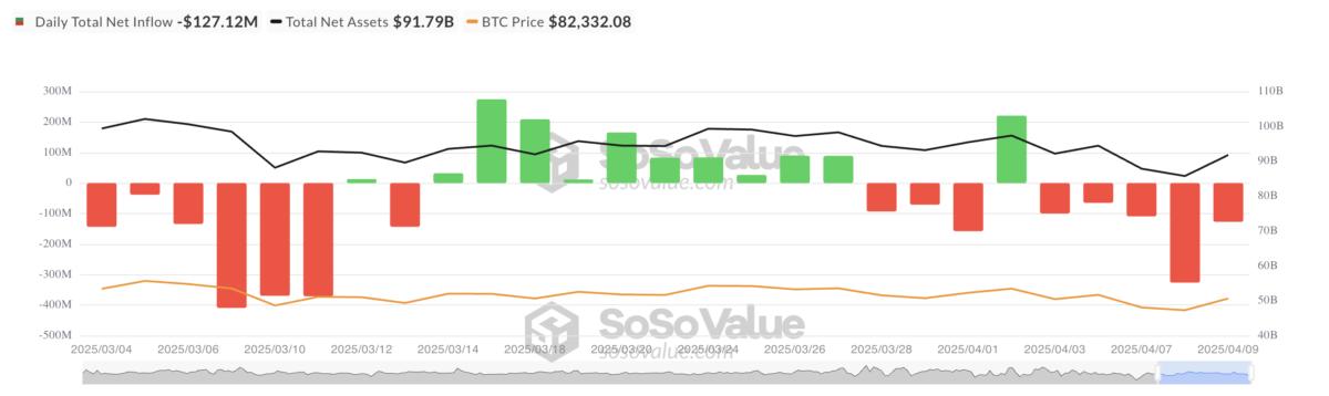 แนวโน้มที่นักลงทุนสถาบันถอนเงินทุนจาก spot BTC ETFs นี้หมายความว่าความเชื่อมั่นในทิศทางราคาของ coin ในระยะสั้นกำลังอ่อนแอลง ส่วนใหญ่เนื่องจากความไม่แน่นอนทางเศรษฐกิจมหภาคท่ามกลางสงครามการค้าระหว่างประเทศของ Donald Trump ที่กำลังดำเนินอยู่